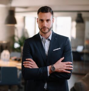 A joyful bride and groom share a touching first look moment before their wedding ceremony.